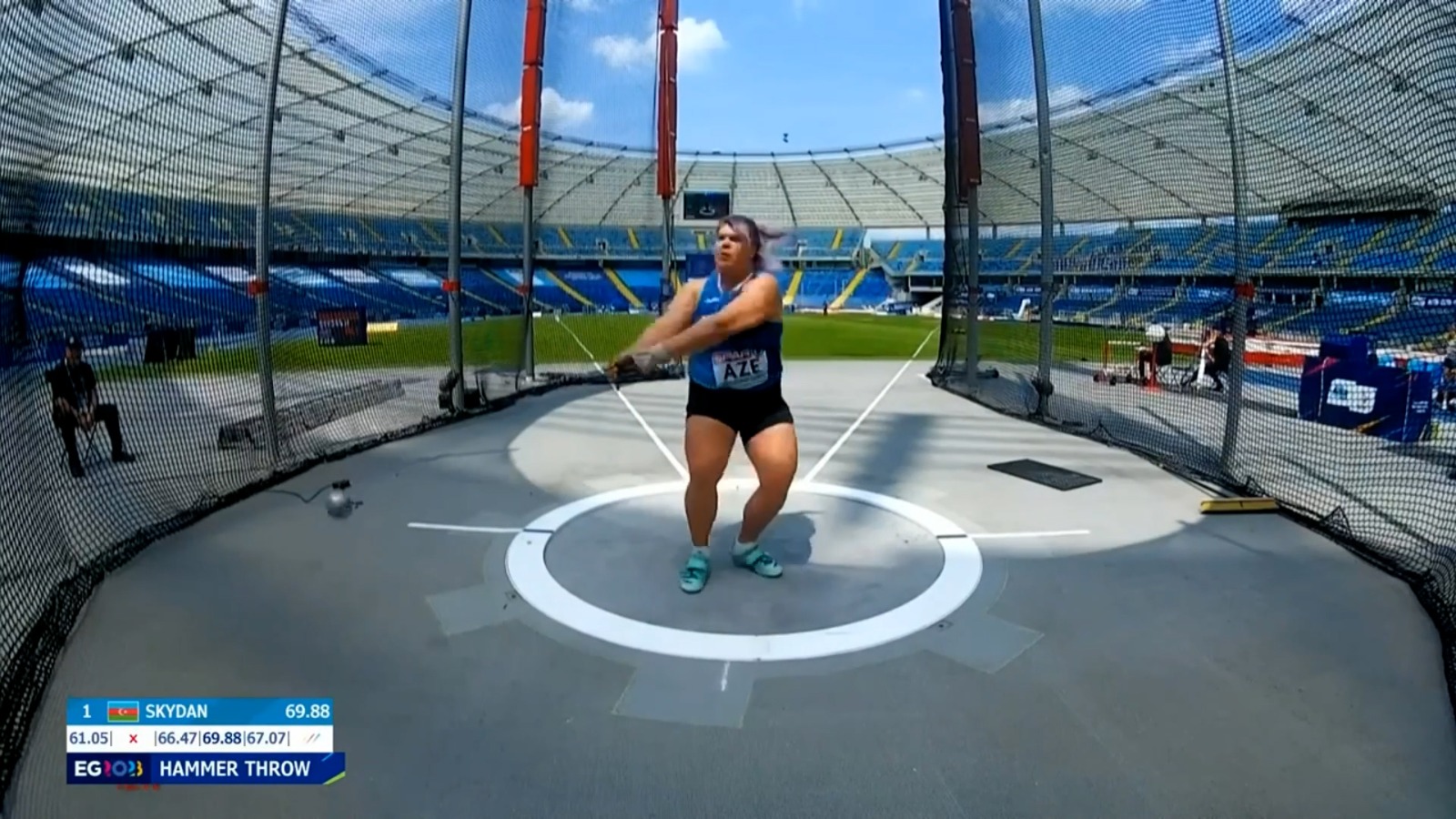Polşanın ev sahibliyi etdiyi III Avropa Oyunlarının tərkib hissəsi olan atletika üzrə komandalar arasında Avropa çempionatına start verilib. Yarışın ilk günündə 2-ci və 3-cü diviziondakı idmançılar mübarizə aparırlar. 3-cü divizionda yer alan təmsilçilərimiz arasında ən uğurlu nəticəni çəkicatma yarışlarında Anna Skidan göstərib. 3-cü cəhdindən etibarən göstəricilərini getdikcə daha da yaxşılaşdıran Anna yekunda 71.69 metr nəticəyə imza atıb. Bununla da 11 atlet arasında Azərbaycan idmançısı bütün rəqiblərini qabaqlayaraq 1-ci yeri tutub və divizionun qalibi adını qazanıb. Üçtəkanla tullanmada Aleksis Kopello 15.91 metr nəticə ilə yadda qalıb. Bununla da atletimiz 14 idmançı arasında 2-ci olub. Lamiyə Vəliyeva 400 metr məsafəyə qaçışda yarışıb. L.Vəliyeva 55.79 saniyə göstərici ilə 5-ci sırada qərarlaşıb. Anna Yusupova 5000 metr məsafəyə qaçışda iştirak edib. 17.37.97 dəqiqə nəticə ilə Anna 14 iştirakçının qatıldığı yarışda finişə 5-ci gəlib. 400 metr məsafəyə qaçışda Cavid Məmmədov 49.58 saniyə nəticə ilə 10-cu yeri tutub. Elman Abışov 800 metr məsafəni 2.06.12 dəqiqəyə qət edib və bu iştirakçılar arasında 14-cü nəticə olub. 100 metr məsafəyə qaçışda İlahə Quliyeva 12.39 saniyə göstərici ilə yarışı 10-cu yerdə başa vurub. 100 metr məsafəyə qaçışda kişilərin mübarizəsindəki təmsilçimiz Aleksey Əliəkbərov isə 11.23 saniyə nəticə ilə 11-ci olub.