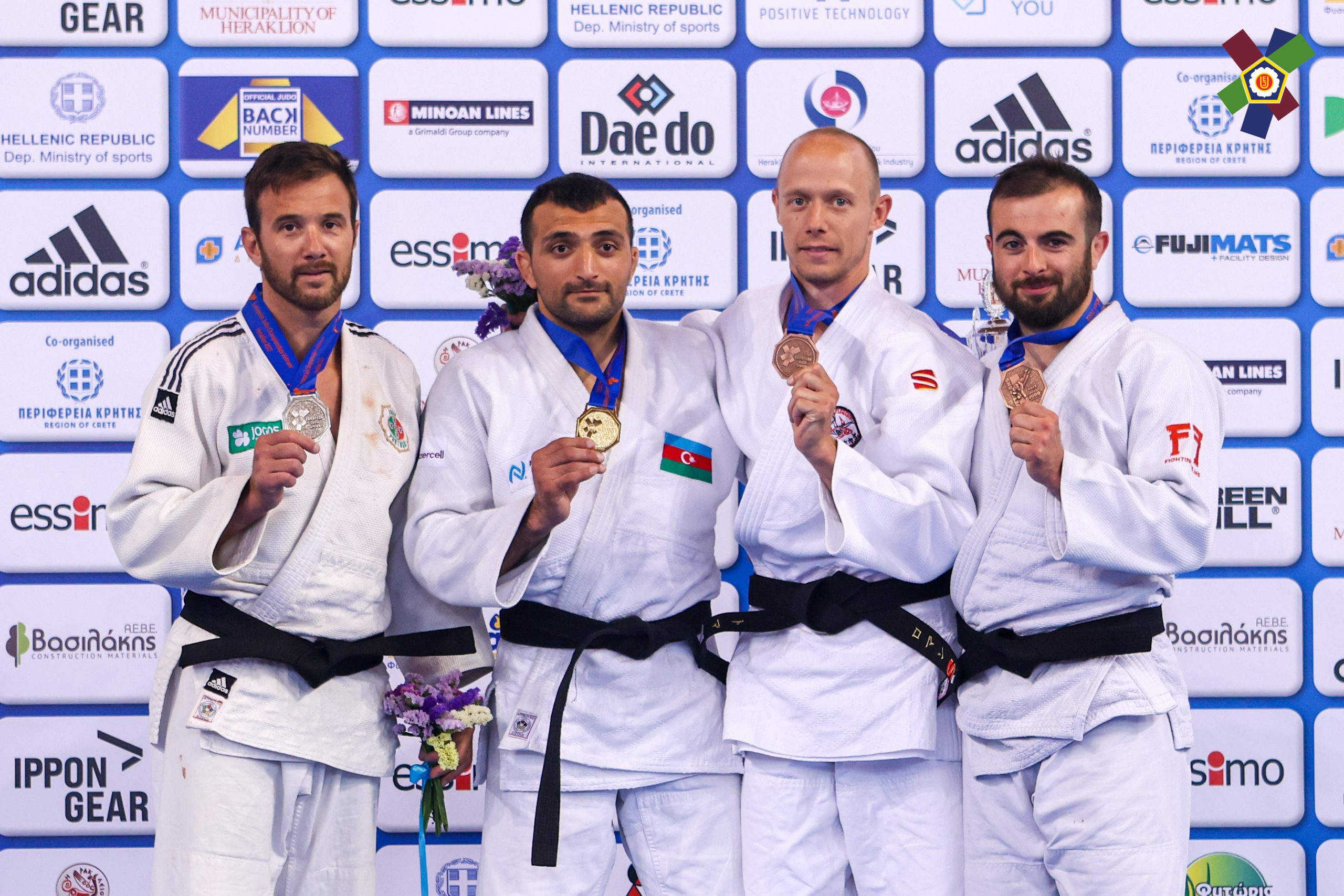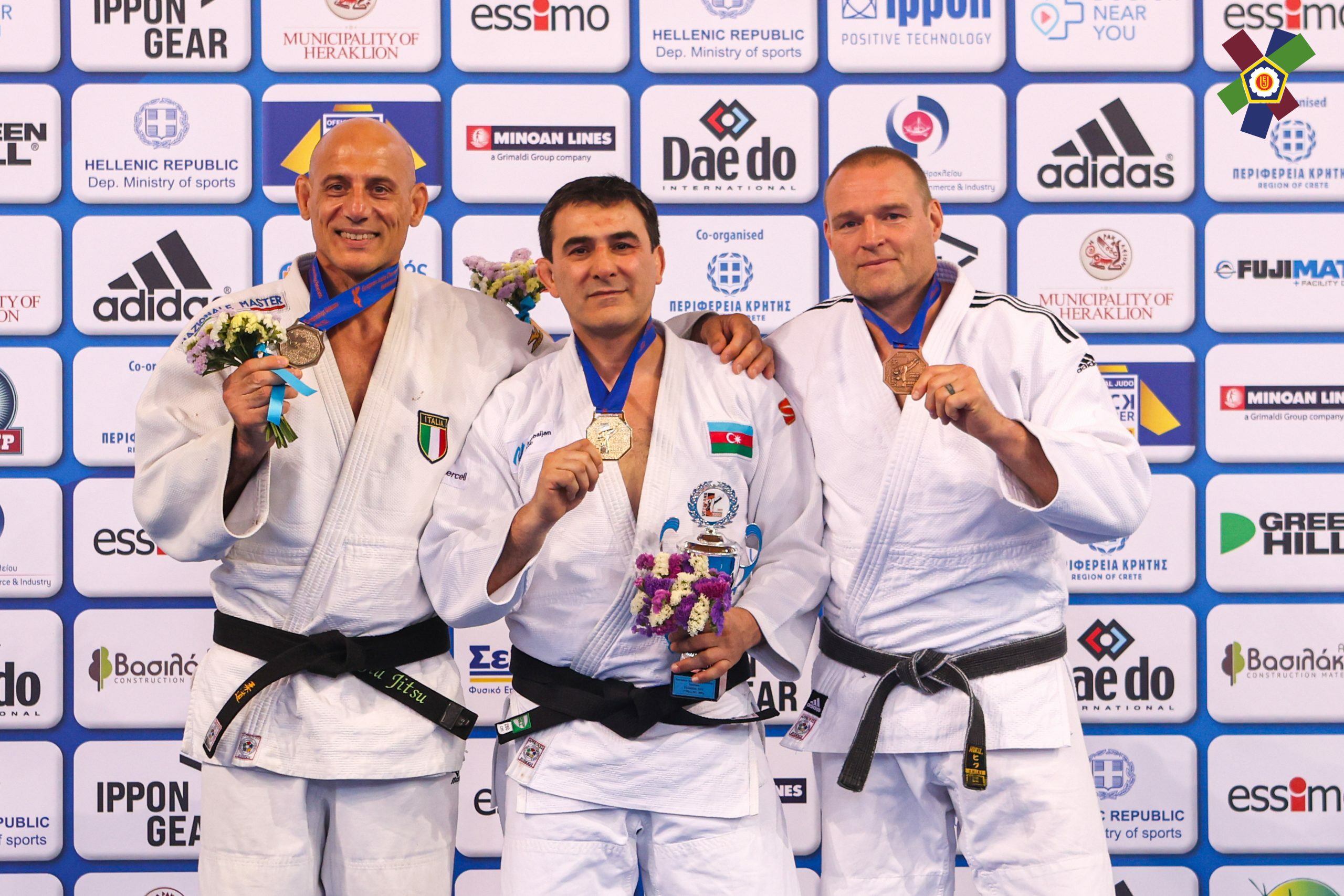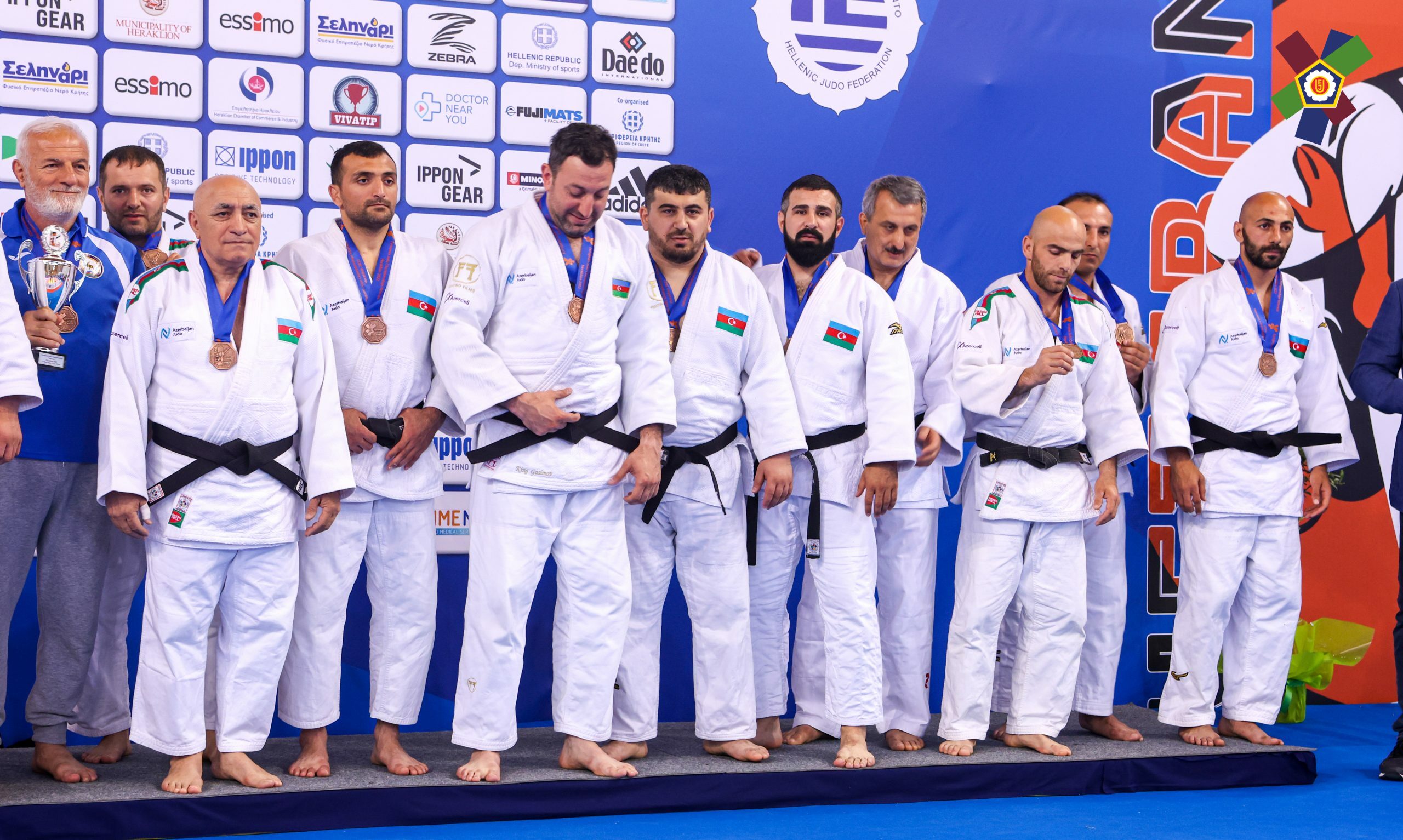 Komandamıza qızıl medalları Nadir Babayev (M1, -73 kq), Tural Səfquliyev (M1, -100 kq), Məmməd Məmmədov (M2, -73 kq), Samir İsmayılov (M2, -81 kq), Azər Fətullayev (M3, -81 kq), Babək Hacıyev (M4, -60 kq), Emil Hüseynov (M4, -100 kq), Mübariz Cəfərov (M5, -90 kq) və Azərbaycanın ən titullu veteran cüdoçusu Fərhad Rəcəbli (M7, -90 kq) qazandırıb. Bu qələbə Heraklionda öz qalib imicinə sadiq qalan azərbaycanlı cüdo əfsanəsi Fərhad Rəcəblinin 8-ci Avropa çempionluğu kimi yadda qalıb.